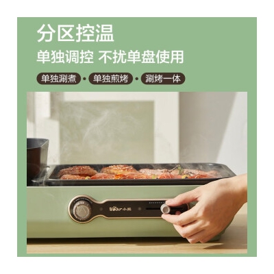 小熊涮烤一体锅烤肉盘家用多功能电烤盘涮烤电烤炉 绿色 DKL-C12J5