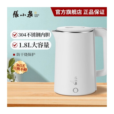 张小泉电水壶热水壶烧水壶开水壶大容量1.8L不锈钢双层防烫自动断电水壶