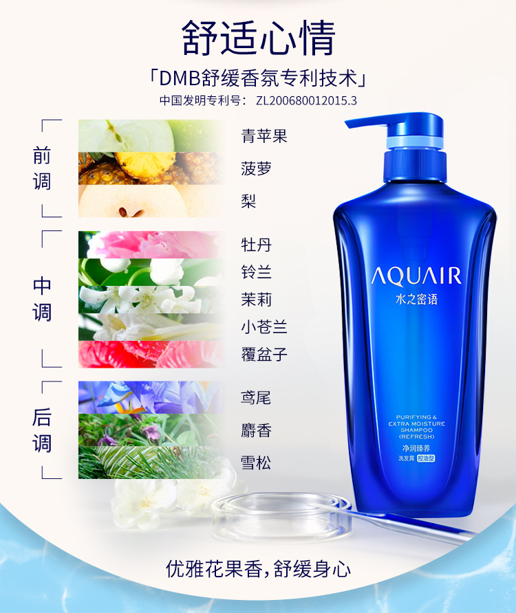 商品名称:水之密语(AQUAIR)净润臻养(控油型)洗发水套装600ml*2蓬松滋润男女士洗发露洗头膏