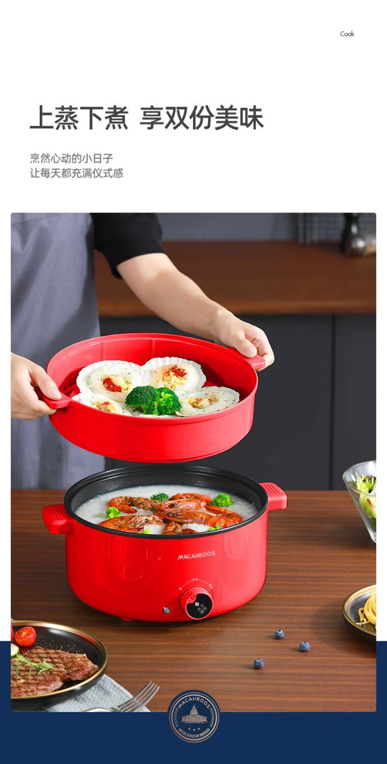 迈卡罗 (MACAIIROOS)多功能电火锅电蒸锅电煮锅宿舍学生锅电锅火锅煮面家用