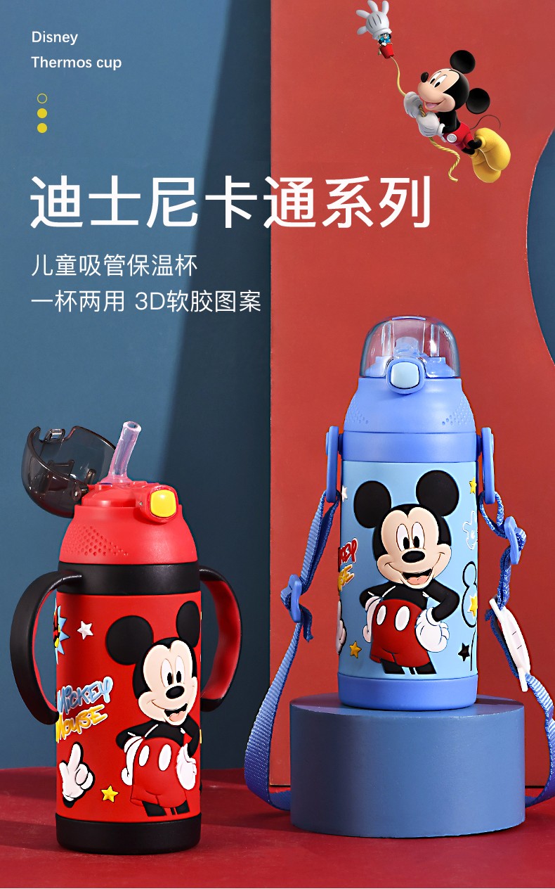 迪士尼(Disney)儿童保温杯带吸管食品级米奇水杯幼儿园宝宝可爱火箭水壶