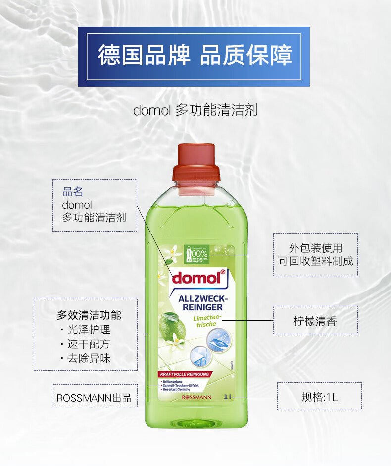 Domol德国多功能甜柠檬味洗涤剂玻璃浴室厕所地板瓷砖清洗剂
