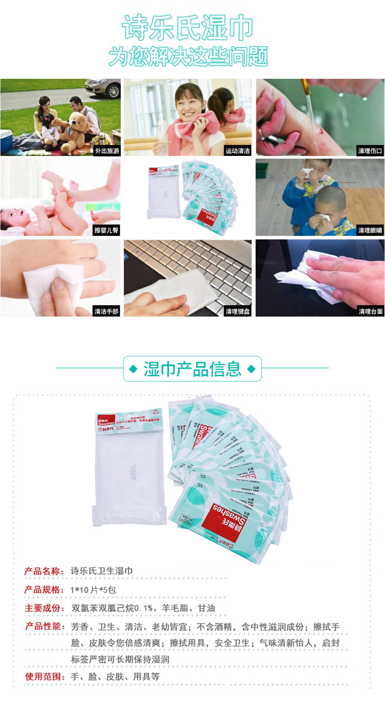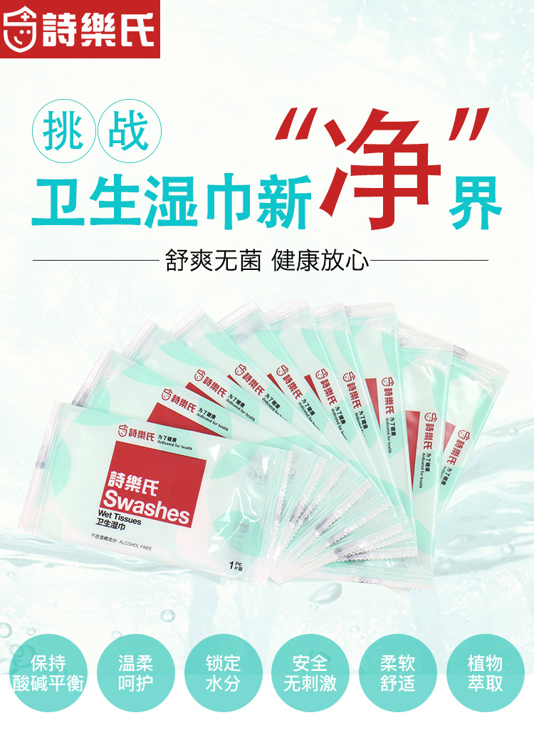 詩樂氏卫生湿纸巾单片独立包装10片装*5包 50片随心便携